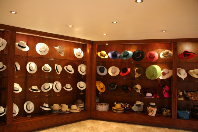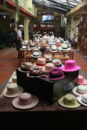 Visite d'église et « flânage ». Dans l'après midi sur notre chemin pour la gare routière, nous allons à la maison « Homero Ortega P & Hijos, véritable institution du célèbre chapeau de paille. Ils ont un élégant musée et une jolie boutique bien achalandée. Il existe des pièces à 2000 dollars ! Je craque sur un modèle un peu moins onéreux.... que je me ferai livrer à Quito dans une semaine.