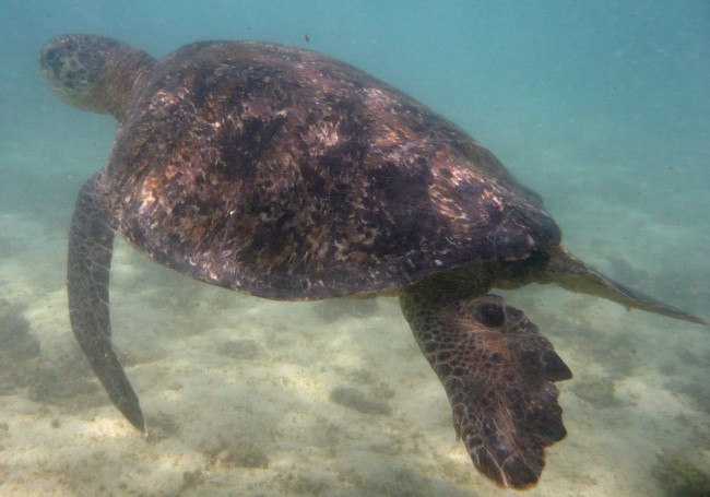 De retour au bateau, nous nous préparons pour un snorkeling sur les rives de l'île Tintoreras. La visibilité n'est pas exceptionnelle et il y a pas mal de houle. Nous voyons tortues, lions de mer.