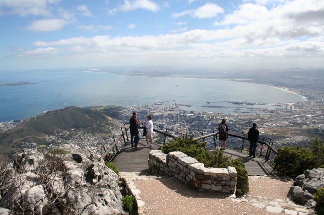 Du coup, nous entamons l’ascension de la montagne de la Table (Table Mountain) seuls. Vue panoramique de la ville Superbe, le ciel était bien dégagé.
