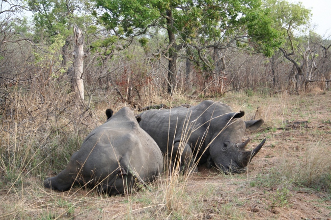 Le safari a commencé avec deux énormes rhinocéros blancs. Il faisait très chaud.