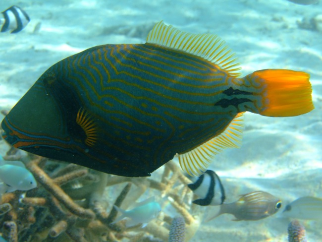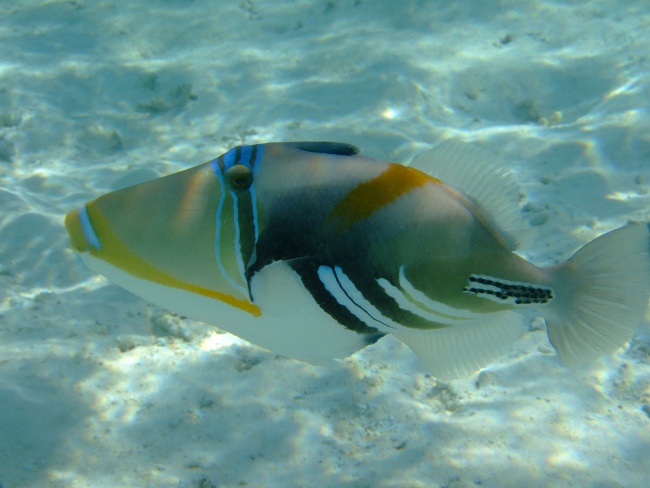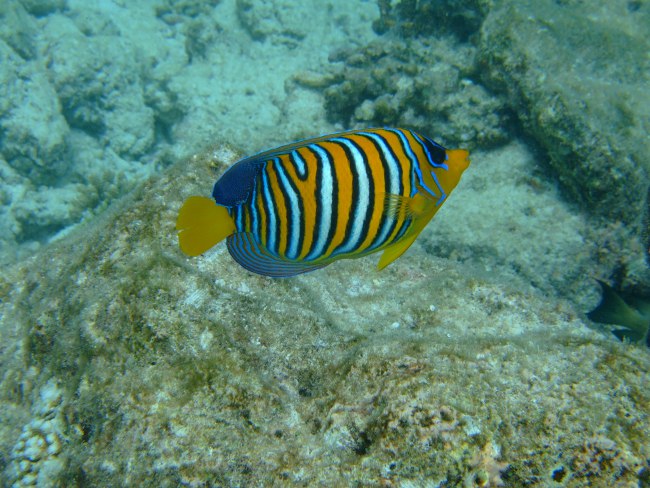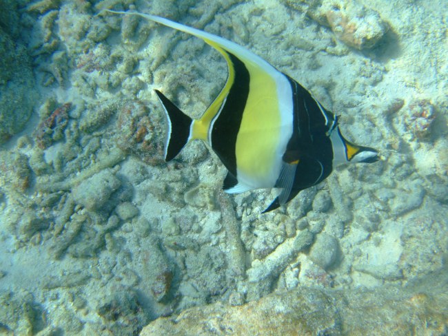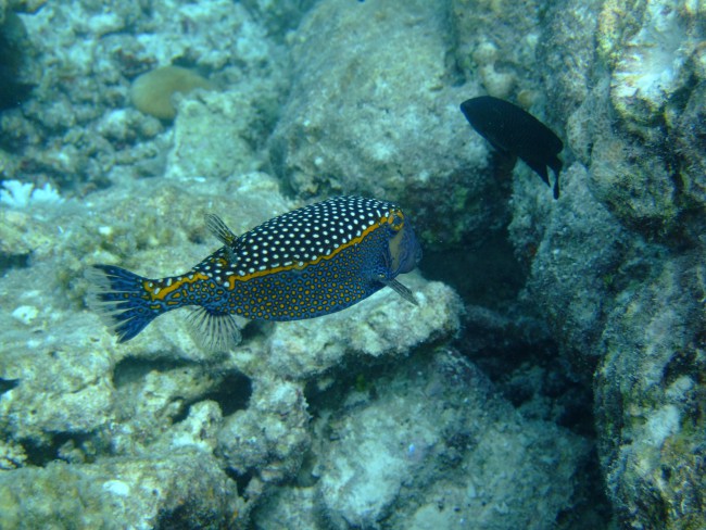 RDV à 8h30. Cours théorique d’une heure puis plongée dans le lagon « échange de détendeur », « enlevage de masque », « lâcher de détendeur », un peu de nage à 6/7 mètres. Déjeuner avec Yoann qui a découvert un super spot de snorkeling avec Florian au bout de l’île. Après midi de plongée en mer. Après de longues négociations, Yoann réussit à faire valider son niveau 1 mais Florian non. En ce qui me concerne c’est la première fois que je suis « autonome » avec mon matériel. Je passe actuellement mon niveau1 en piscine en France, ça change J. J’ai vu des tortues, des murènes, des bancs de poissons bleu turquoise. Nous plongeons au bord d’un récif plongeant dans les profondeurs. Alerte requin baleine, mais nous n’avons rien vu. Retour à la maison, petit bain dans l’eau. Diner puis balade sur le ponton plein de raies… Nous nous posons sous les étoiles filantes… J
