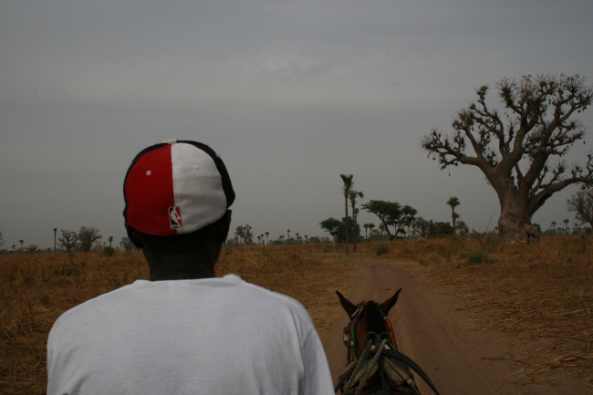 Lamine nous dépose à la gare routière de Dakar, qui s’apparente plus à une grande casse auto pour nos petits yeux d’européens que vraiment un terminal routier. Nous sommes très vite pris en charge par des rabatteurs qui nous emmènent à notre arrêt et qui s’empressent de nous demander leurs dus. Ce moment est assez oppressant, car nous sommes les premiers à monter dans ce taxi brousse 7 places et nous ne sommes pas vraiment surs que nous sommes dans le bon véhicule… Nous sommes rassurés lorsqu’un homme monte dans la voiture en demandant la même ville que nous et lorsque nous constatons également que les locaux étaient autant sollicités que nous par les divers marchands ambulants… Nous faisons le trajet bien tassé et arrivons à la gare routière de Joal. Nous ressentons la même oppression qu’à Dakar, à croire que c’est un leit motiv des gares routières : les hommes essaient de nous arnaquer en nous proposant un taxi aussi cher que pour faire Dakar – Joal et lorsque nous déclinons ils nous disent qu’il va nous arriver malheur… Sympa dis donc… Nous continuons à pied et croisons un homme dans une station service et lui demandons notre chemin, celui ci nous demande si nous voulons nous joindre à lui pour déjeuner… Trop sympa… Nous déclinons et il nous trouve un faux taxi à un tarif raisonnable qui nous emmène au Relais 114. Finalement les méchants sont aux gares routières et en dehors règne un climat très paisible… J Nous arrivons au relais 114, et déjeunons là bas, nous faisons la rencontre de Yacine qui sera notre guide durant cette épopée sénégalaise… Yacine nous reçoit chez lui et nous nous rendons avec son beau frère au baobab sacré dans la charrette brousse…