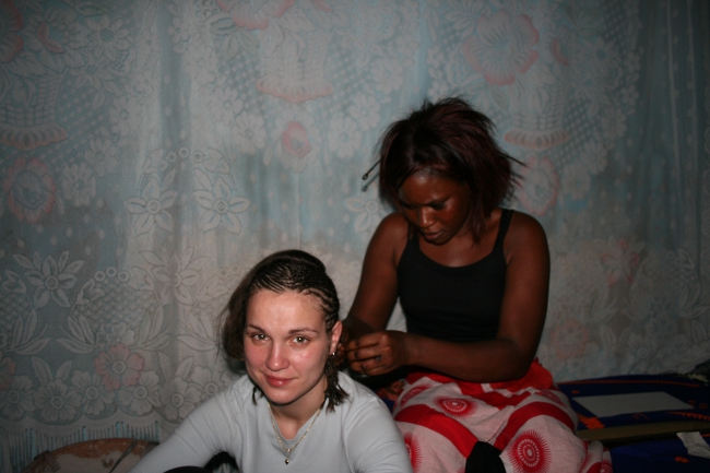 Nous visitons l’île et allons boire un verre avec Yacine et Pierre Bernard. Nous rentrons à Joal avec la nuit, puis nous allons chez des amis de Yacine qui accepte de me tresser. « Dieuredieuf » !!!