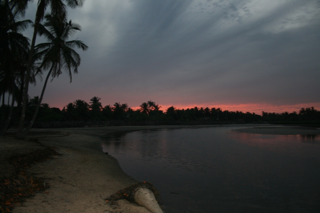 Nous passons l’après midi à la plage et allons marcher dans le village de Ngoumane. Nous sommes ensuite partis nous balader dans la brousse. « Africa… Africa ah ah » d’Ismael Lo dans la tête. Yacine nous a fait gouté les fruits de l’arbre à pain : pas top. Nous sommes ensuite retournés à la plage pour voir le coucher de soleil (c’était un peu couvert). Diner à l’hôtel : pastel, poissons + bananes. Balade au bord de la mer sous un ciel étoilé.