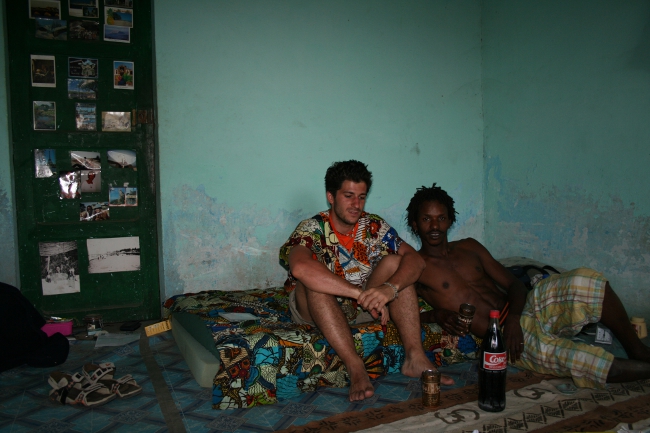 Petite discussion avec Yacine, nous décidons du reste de notre périple : nous sommes retournés chez MADY : Attaya (thé), lecture. Nous prenons la pirogue de l’hôtel de Dionewar (le mec de la pirogue était un gros raciste et nous demandait un prix scandaleux par rapport au prix des locaux…). Nous retournons à Djiffer et prenons un taxi brousse pour Palmarin. Nous arrivons au Yokam et avons un petit bungalow sympatoche…avec en plus un lit ! Quel luxe J.