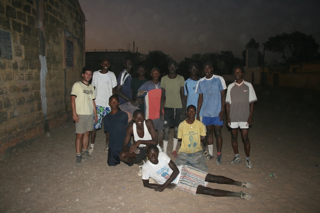 Arrivée à Mbour, nous sommes allés au marché artisanal : une énorme négo de quasi une après midi commence… Achat de deux chaises et troc du Tshirt de Yoann contre les statuettes des 7 jours en ébène. Nous étions assez contents. Puis nous allons chez Yass dans sa famille. Une petite partie de foot s’improvise, Yoann se fond dans la masse, un vrai petit black… Puis nous dinons dans un petit resto.