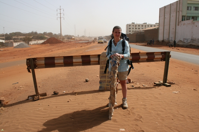 Avant le départ pour Dakar, nous allons à la jolie plage de Mbour et nous arrêtons dans un petit bar sympa. Dégustation de noix de coco, nous faisons la rencontre d’un lutteur sénégalais, successeur de Bombardier, il est impressionnant. Il ya aussi des vieux blancs avec de jeunes sénégalaises, ça dégoute un peu… Nous faisons un peu de lutte sur la plage, Yass me bat ! Puis il nous accompagne à la gare routière, et Yoann et moi partons pour Dakar. Nous sommes déposés dans un croisement au milieu de nulle part, enfin au milieu des voitures !