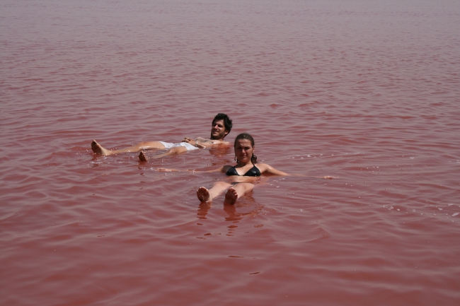 Départ pour le lac rose, endroit magnifique. Balade à la plage et baignade dans le lac… ça flotte et ça brûle… Le lac est vraiment d’un rose profond. C’est très très beau. Nous déjeunons un yassa. Puis nous retournons vers Dakar et allons au marché Castor pour acheter le tissu pour nos tiaya et le boubou de Narcy. Yacine nous a rejoint.