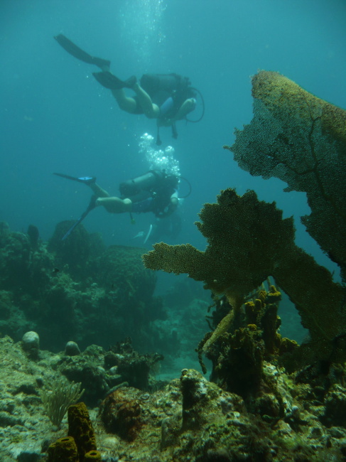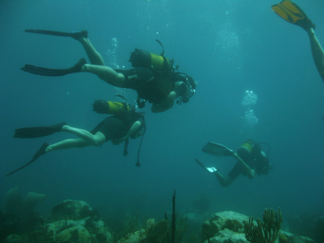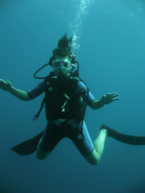 Arrivée au Parking « bains Jaunes » vers 8h… départ sous la brouillasse pour la rando. Le port des Kway étaient de rigueur enfin pour yo et Moi… Jolie rando, ascension du volcan avec beaucoup de vent mais globalement la rando était très accessible. Arrivée vers le cratère sous la brume, le vent…condition assez désagréable. C’était très luxuriant, en comparaison avec le Piton de la fournaise, le paysage n’avait rien à voir… De plus quelques odeurs intervenaient au cours de la rando pour la pimenter, belle odeur d’œuf pourri… surtout au niveau du cratère… Redescente vers le parking et là pendant qu’on redescendait, le sommet se dégageait… Super ciel bleu, vu sur les Saintes et sur les côtes guadeloupéennes…. Mais bon on n’a pas eu le courage de retourner au sommet, en plus on devait aller plonger… Nous sommes repartis direction Malendure. Arrivée à Malendure, Yo et Morgan ont mangés des bokits, puis nous sommes allés au club et on a pris le bateau, direction la jardin japonais… Super spot, avec pleins de patates, on est passé dans une grotte, j’ai vu une tortue imbriquée et les mecs ne l’ont pas vus car ils étaient sur la murène vite fait que je leur avait montré… J Plongée souvent à contre courant, assez physique… C’était vraiment joli, ça remontait le niveau de la dernière plongée à Port Louis… Retour à Malendure, on s’est laissé tenter par la plongée de nuit…. La journée allait être très longue. On a donc décidé de manquer le saut de la Lézarde pour buller au soleil à Malendure. Je voulais manger un bokit mais il n’y en avait plus… L du coup j’ai pris un petit panini… Après midi sur la plage, avec au programme le sale chien qui a mis sa truffe dans mon oreille….et baignades…