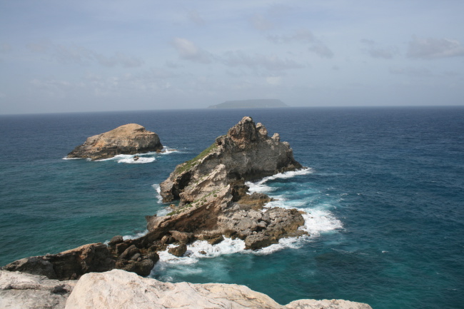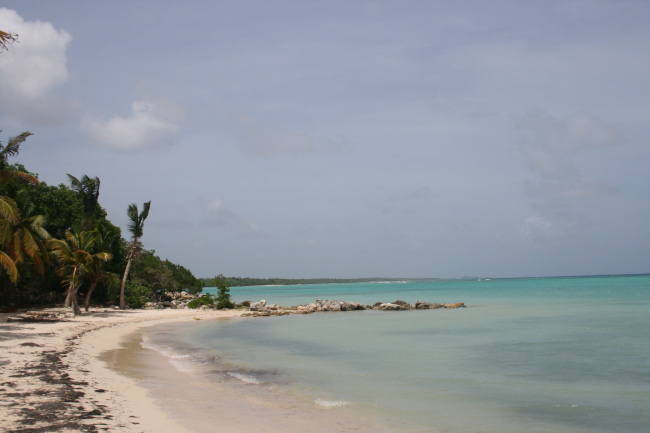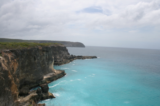 Avec Morgan nous sommes partis chercher le poisson sur le lieu de la veille… mais pas de gros poisson… Retour sur Saint Anne où nous avons trouvé du poisson au marché local : barracuda. Achat de petits légumes puis retour à la maison pour la marinade… Départ pour la Porte de l’Enfer, nous sommes partis par les petites départementales, on a du faire quelques petits détours… Cela nous a permis de voir le cœur de l’île de Grande Terre. Arrivée à un look out, vue sur le lagon de la Porte d’Enfer, magnifique. Petite lagon préservé de la fougue de l’Océan Atlantique. Nous sommes revenus en arrière pour nous baigner dans ce lagon, eau très chaude… Nous n’avons pas pu faire la balade pour cause de l’heure du match qui approchait. Direction La pointe de la Vigie, en chemin nous nous sommes arrêtés à tous les looks out (sauf 1), c’était très joli. Falaises donnant sur l’Océan suivant plusieurs points de vue… Arrivée Pointe de LaVigie, petite marche pour parvenir à l’extrémité nord de la Guadeloupe… Mignon. Nous sommes repartis vers Anse Bertrand en passant par l’Anse Laborde (on n’est même pas sorti de la voiture…). Arrivée à l’Anse Bertrand, ville d’où vient Lilian Thuram. C’était assez, mort, on a cherché un endroit pour manger et voir le match. Difficile à trouver, on a bougé à la plage de la Chapelle (suite à un de mes caprices diront les mecs) pour aller au Zion Train recommandé par le guide du routard mais il était fermé… Nous sommes retournés en ville, on a pris un plat à emporter (poulet grillé + riz épinard : bof) et on s’est posé dans un bar pmu où on a regardé la défaite de la France 4 – 1 contre les Pays bas… Nous sommes repartis vers Port Louis à la plage du Souffleur, assez mignon mais comme c’était couvert ça perdait un peu de son cachet. Nous sommes repartis pour finir le tour de l’île en passant par le Petit Canal, Morne à L’eau (avec son superbe cimetière au bord de la route), Les Abymes puis retour à Saint Anne. Pas vraiment grand-chose à signaler dans ces villes, tout était assez calme. Retour tranquille à l’appart, où on a préparé le poisson mariné du matin au lait de coco avec du riz (également coco), banane plantain et une salade tomate avocat. On a eu les yeux plus gros que le ventre, on n’a pas pu finir…