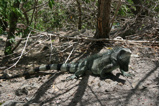 Levée tranquille vers 9h, on a préparé nos petites affaires et on a rendu les clefs de l’appart, on est parti au club de plongée pour déposer quelques affaires dont nous n’avions pas besoin pour la journée. Puis direction le fort Napoléon, sur le chemin presque à l’arrivée petit look out sympa, avec un magnifique flamboyant. On s’est posé avec Yoann car on attendait Morgan qui était reparti au bourg pour chercher le petit dej. Morgan arrivé, on a fait la rencontre d’un premier iguane, super beau. Puis il y en avait un deuxième posé sur un arbre. Trop mignon. On est monté au fort mais on n’a pas visité ça saoulait de payer pour voir un jardin et une vue dont on avait largement profité la veille grâce à la trace « gratuite » du chameau… On est redescendu, direction la plage Pompierre, la plus belle et populaire de l’île. En effet, elle est magnifique. On s’est posé tranquille, j’ai commandé notre repas à l’escale créole où nous avions déjeuné la veille… J’ai demandé une livraison pour 12h30, ce qui nous laissait 1h15 pour le snorkeling… Snorkeling très sympa… Attrait majeure au cours de cette balade, une magnifique langouste… C’est vraiment joli il y avait pas mal de poisson dont 1 très joli bleu et orange… Je suis revenu sur la plage pendant que Yo montrait la langouste à Morgan pour aller chercher à manger. J’ai récupéré notre repas à l’entrée de la plage, trop fort. Nous avions pris 2 bokits jambon fromage chacun, ça faisait un peu beaucoup…. Puis nous sommes repartis vers le club de plongée. Préparation tranquille. J’étais un peu stressée suite à l’expérience de la veille un peu difficile… Nous sommes allés sur le site de le Pointe Cabrit. Plongée superbe, on a vu des crevettes, murènes, 3 tortues imbriquées dont 1 énorme, 1 poisson scorpion, mollusque monnaie caraibes. Merci au guide de palanquée Yoann Bonanni qui nous a montré le poisson scorpion ainsi que les murènes… Sinon le moniteur m’a fait faire un exercice de stabilisation dans l’eau, ça m’a permis de me sentir à l’aise… du coup la plongée s’est super bien passé… Bilan 15 m, 53 minutes et il me restait 80 bar !!! Trop bien… Retour au club, nous avons fait nos « adieux » au moniteur puis nous nous sommes redirigés vers le débarcadère… Nous sommes repartis nous chercher une petite glace…puis on a repris le bateau. Retour aux trois rivières. On a repris la voiture et on est rentré tranquilou à la maison… Repas tranquille : les restes de vendredi, le barracuda et des œufs mimosa. Dodo.