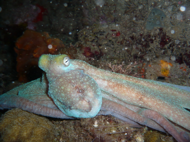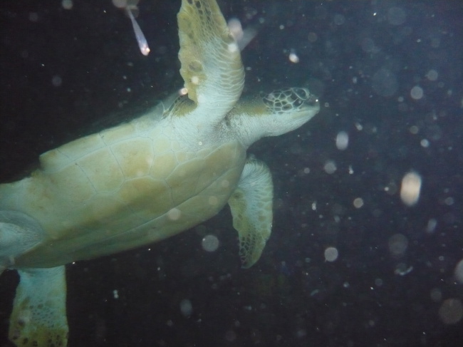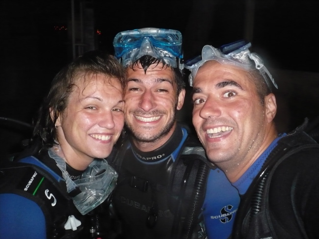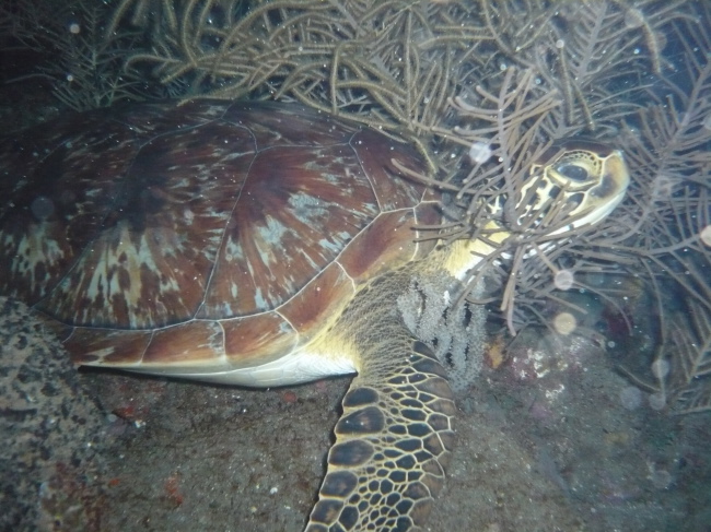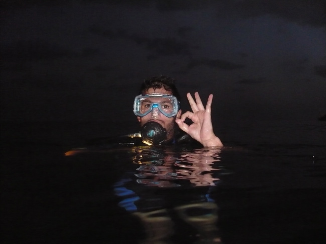 L’heure de la plongée de nuit a sonné… SPLENDIDE !!!! Au programme 5 tortues vertes, calamar, poulpe, raie torpille, coffre taureau, diodon, murène, serpentine, étoile de mer… Magnifique plongée de 80 minutes !!!! A la fin j’avais froid… on s’est vraiment bien régalés.