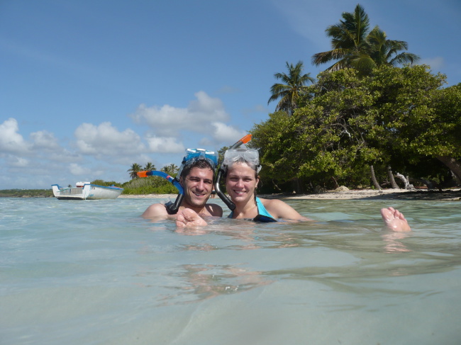 Puis petit snorkeling à côté de la plage de sable noir… En toute franchise, je m’attendais à mieux. Il faut dire que c était un peu couvert, ce qui altérait pas mal la visibilité. On a quand même vu : poisson trompette, coffre, perroquet… ensuite leur nom me manque mais il y avait un petit poisson noir avec des points bleus fluo très joli, de jolis coraux, des énormes oursins… Puis retour sur la plage, prise de connaissance avec le club de canyoning, super sympas, ils nous ont prêté le guide de rando de gwadada… Départ et direction Saint Anne, petit arrêt à la cascade aux Ecrevisses, mignonet. 10 minutes de marche aller retour suffisait… Retour en passant par Gosier à cause des embouteillages à Pointe à Pitre…C’est très mignon plage sympa avec vue sur l’Ilet du Gosier.