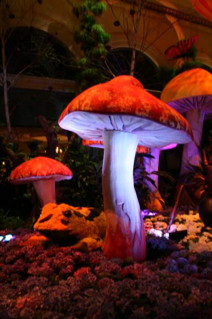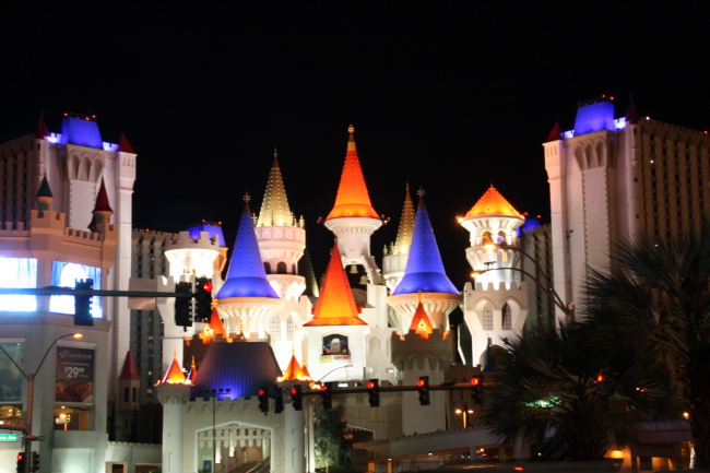 Le réveil sonne, la personne d’avant a laissé le réveil. RRRrrrr. Nous somnolons et allons déjeuner vers 10h45 au buffet de Treasure Island, nous nous faisons encore « pêter le bid » c’est trop bon et ce smoothie à la mangue… magnifique. Puis après une petite sieste nous allons à l’aéroport pour changer la voiture, nous expliquons notre situation, nous devons tout vider de la voiture L puis muni d’un petit papier, nous allons voir un homme qui nous dit « Vous voulez plus gros ?, choisissez celle que vous voulez et partez… ». Nous choisissons un Chrysler 7 places, immatriculé en Californie, il faut rouler local… J Nous retournons sur Las Vegas, nous arpentons Las Vegas boulevard en entier nous voyons tous ces hôtels, tout est démesuré, c’est dingue. Tout est bling bling. Arrivés à l’hôtel, nous nous baladons, c’est fou il ya des canaux, des rues reconstituées, des personnes dans des gondoles, des glaces à l’italienne. Trop sympa et joli, nous avions choisi un super hôtel. Nous nous préparons pour aller à la piscine, nous nous baignons et prenons un bon bain de soleil. Nous rentrons nous préparer, nous ressortons pour faire un tour du strip, nous visitons le Mirage avec ses fleurs tropicales et ses chutes d’eau, le Caesar Palace avec ses grandes colonnes, nous allons au Bellagio avec une déco kitsch genre fourmi géante, grenouille, champignon, c’est l’architecte qui a du prendre des champignons… Nous allons ensuite au Buffet du Bellagio, un des plus chicos. La nourriture est au top : super pizza pesto crevette, moules exquises, crabe… Franchement nous nous sommes régalés. Nous repartons faire une balade digestive, nous continuons la visite des casinos du strip. Nous allons jusqu’au Louxor avec son énorme sphynx et sa pyramide, puis allons au New York New York avec ces rues de New York reconstituées, ces gratte-ciels, la statue de la liberté, puis le Las Vegas Paris : reconstitution de l’ambiance parisienne et un lobby digne du château de Versailles. Puis nous allons jouer au Treasure Island enfin je devrais dire que nous allons perdre à la roulette… je doute fortement du caractère aléatoire des ces machines… Nous sommes rentrés bredouille à l’hôtel. Nous nous couchons pour notre dernière nuit 4*