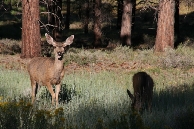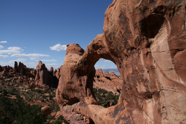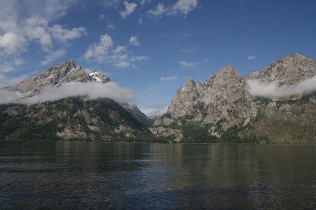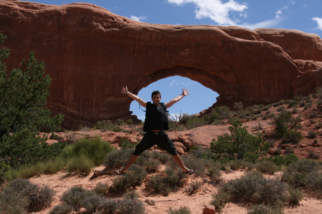 Lever 6h30, nous plions rapidement les affaires et la tente mouillée. Nous partons vers 7h et nous dirigeons vers l’entrée Sud de YS, plusieurs paysages de brumes fascinants. Nous nous arrêtons aux Lewis Falls. Nous arrivons vers 8h30. Nous rejoignons le Grand Teton National Parc. Plusieurs panoramas superbes avec lacs et montagnes. Vraiment très joli. Vers la sortie du parc, nous avons aperçu un moose… Nous avons attendu une heure en vain qu’il se lève… Bilan une « corne » en photo. Nous ne sommes pas en avance puisque nous sommes censés rejoindre Arches. Nous verrons bien, nous nous arrêtons manger au Burger King : je n’en peux plus des fast food. Je prends le volan et c’est parti pour de longues heures de route, les paysages sont superbes. Autour de Salt Lake city c’est très sympa, nous l’avions fait de nuit à l’aller… Nous nous arrêtons à Price pour téléphoner au KOA de Moab. Nous réservons deux nuits. La nuit commence à tomber et il se dessine dans le ciel une belle tempête. Nous voyons des éclairs splendides, j’ai un peu peur en conduisant. A un moment donné, ça devient l’apocalypse, je crains un peu l’arrivée sur Moab. Je laisse le volant à Yoann pour la dernière heure, le temps s’améliore, toujours des reliquats de tempête. Nous passons devant l’entrée de Canyonlands puis l’entrée de Arches. Nous traversons Moab et trouvons le KOA. Nous trouvons à la réception un petit papier pour nous, nous trouvons facilement notre emplacement, l’inconvénient c’est qu’il est au bord de la route très passante. Enfin… nous montons notre tente à 22h30. Il y a beaucoup de vent. Au dessus de nos têtes le ciel s’est dégagé. Prions ! Nous avons internet, Youhou ! Retour à la civilisation dans un cadre totalement sauvage. Pendant la nuit, le tonnerre gronde et il pleut… Un peu horrible cette nuit…