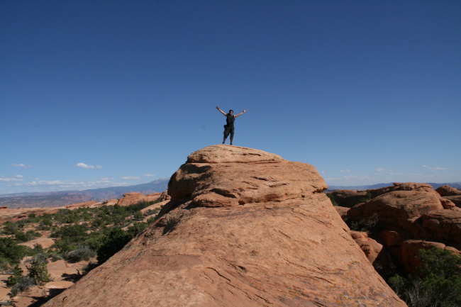 Lever 6h45, nous faisons le tour du proprio pour voir s’il y a de meilleurs emplacements. En fait, ils sont tous assez bruyants, nous restons à notre place. Je prends une bonne douche chaude, alleluiah… Nous petit déjeunons au camping, au programme de bons Pancakes. Nous nous enregistrons à la réception et la nana nous donne quelques conseils. Nous partons vers Arches mais nous nous arrêtons avant au supermarché de Moab et là délivrance ! : des produits frais, des sandwichs simples (malgré la composition étrange). Nous achetons de quoi déjeuner le midi. Au programme sandwich, pates fraiches, fruits frais, muffin. Cool ! Nous reprenons la route vers Arches qui est juste au nord de Moab. Nous entrons dans le national parc, où les rangers nous remettent une carte bien utile avec les lookouts, les randos… Nous nous mettons d’accord sur une stratégie. Nous commençons d’abord par une petite rando « parc avenue » car soit disant les immenses rochers font penser aux gratte-ciel de New York. Nous continuons en faisant le lookout de La Sals Mountain View point, nous explorons les joies du retardateur, nous continuons avec les Petrified Dunes Viewpoint puis nous nous dirigeons vers le balanced rock, espèce de gros rocher sur le point de tomber d’une haute colonne. Nous nous dirigeons vers la Windows section où nous faisons une mini rando vers la Double Arch, très jolie, puis nous attaquons une autre rando pour voir les North and South Windows et la Turret Arch. Nous finissons la rando par un primitive trail, chemin moins indiqué que les autres où les repères sont les pierres entassées au bord du sentier : un peu plus roots donc moins de personnes. Nos premières arches nous font mesurer la beauté du lieu. Nous continuons par le Devil’s Garden où un trail un peu plus costaud nous attend. Mais avant, il faut reprendre des forces et se restaurer. Nous nous installons sur une aire de pique nique très sympa et agréable, cependant le vent qui y règne nous donne très froid, nous nous requinquons et c’est parti pour le Devils Garden Trail. Nous sommes accueillis par d’énormes colonnes orange et nous attaquons nos premières arches : Pine Tree Arch & Tunnel Arch. Nous continuons et apercevons la majestueuse Landscape arch, plus grande arche du monde. Là commençait le primitive trail qui je le confirme était assez difficile avec des passages délicats : contournement d’un bassin d’eau par une falaise de roche, marche sur le haut d’une falaise. C’était magnifique, grandiose. Nous allons voir Private Arch : mignonne puis nous rejoignons la magnifique Double O Arch qui forme un 8 à l’envers : somptueux. Nous reprenons le trail normal qui s’avérait un peu arduJ, nous faisons un tour par Navajo Arch et partition arch qui comme son nom l’indique se divise en 2. Nous finissons par Landscape arch et terminons le trail épuisés. Il était 18h. Initialement nous avions prévu de faire le trail de Delicate Arch mais nos jambes et l’heure avançant nous ont fait changer nos plans. Nous sommes donc aller admirer cette magnifique arche depuis ses deux lookouts : Upper Delicate Arch Viewpoint et Lower Delicate Viewpoint. Les lookouts étaient sympas même si je pense que la vue depuis le trail au pied de l’arche était encore plus impressionnante. Nous ne pouvons pas tout faire. Nous rentrons au camping en passant faire des courses pour le soir : au programme apéro, bière, chips et grillades : brochettes de bœuf + salade et fruits. Arrivés au camping, nous prenons l’apéro tranquilles. Nous dinons une bonne viande américaine avec des petites tomates cerise, yaourt : trop bon. Au programme breaking bad, toujours aussi glauque.