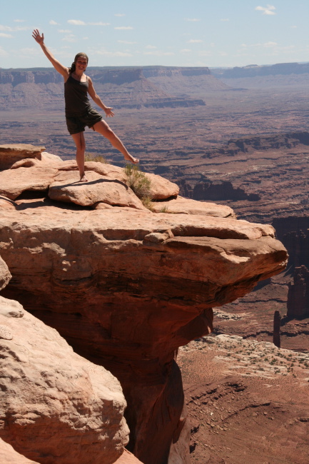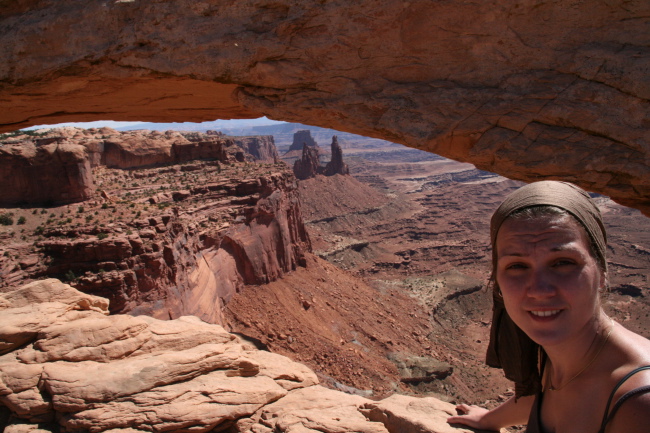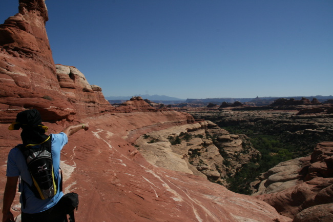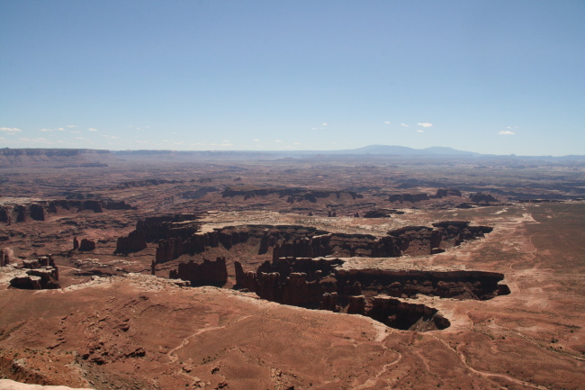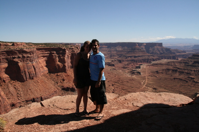 Nous nous réveillons vers 7h avec le matelas toujours aussi dégonflé… RRRrrrrRRR. Finalement, nous décidons de quitter le KOA pour dormir à Canyonland. Nous partons pour une excursion dans la partie « Island in the sky » (partie nord de Canyonland). Nous passons évidemment au City Market pour préparer nos vivres. Nous décidons de ne pas faire trop de rando car le programme était bien chargé. Nous devions retrouver la partie sud pour le soir. C’est parti pour les plus beaux lookouts d’Island in the sky. Nous commençons par le Shafer Canyon Overlook, grandiose, splendide. Nous apercevons les pistes de 4x4, c’est fou ils doivent s’éclater les mecs. Nous allons jusque Mesa Arch où nous faisons une bibi rando. Cette arche est superbe et n’a rien à envier à ces cousines de Arches National parc. Nous continuons vers le Buck Canyon Overlook et nous allons jusque Grand View point Overlook où la vue est superbe. Nous faisons une belle balade au bord de la falaise. Attention au vertige. Nous nous retrouvons à nouveau devant un superbe lookout. Nous reprenons la route vers Whale Rock & Upheaval Dome où nous avons déjeuné. En allant à Upheaval Dome, nous passons le Green River overlook. Superbe lookout sur la green river. Nous quittons Island in the sky et allons au Dead Horse Point State Park, parc d’état où nous nous acquittons de notre droit d’entrée de 10$. Nous arrivons à un magnifique lookout sur la Colorado River. Vraiment superbe, awesome. Nous repartons direction Moab pour acheter de l’eau et de la bière puis nous retournons à Canyonland mais cette fois ci dans le « quartier » des Needles. Environ 2h de routes à travers des paysages somptueux… Nous espérons pouvoir trouver de quoi dormir dans le parc. Nous arrivons au Squaw Flat Campground. Il fonctionne par un système d’enveloppe, tu te trouves un campement et tu paies dans une boite metallique. Nous avons trouvé un petit campement tout à fait mignon au milieu de l’immensité de Canyonland. Le vrai silence, vraiment paisible. Nous nous posons, cela fait du bien. Yoann essaie de rafistoler le matelas et je dis bien essayer… Nous dinons les pates froides et les fruits que nous avions acheté au city market. Le ciel est magnifiquement étoilé… Nous nous couchons et nous regardons un feuilleton de breaking bad et là le drame se produit : le matelas est dégonflé car il a un trou !!! Bilan nous dormons à même le sol. C’est horrible…