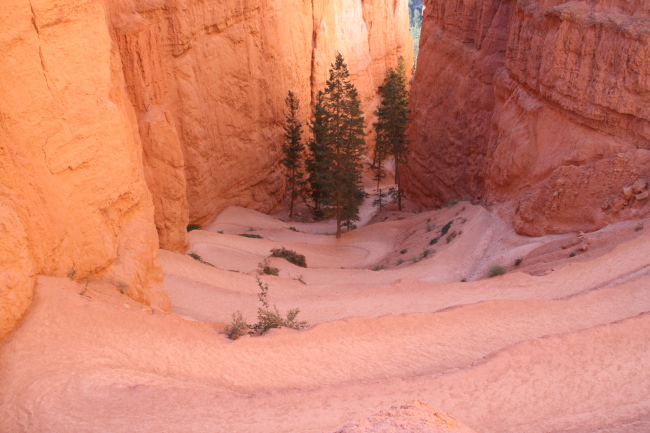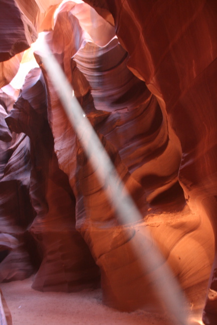 Lever à 6h30 après une nuit géniale !!! Les réparations de Mike yoyo sur le matelas ont fonctionné. Nous voyons le lever de soleil sur Monument Valley, ça promet. Nous arrivons vers 7h30 au parc tribal de Monument Valley, nous nous engouffrons sur une vraie piste avec des bosses et tout et tout… Nous suivons la carte fournie à l’entrée. Nous voyons les fameuses Mitten’s butte qui doivent être spectaculaires au coucher du soleil. Nous avons particulièrement aimé le John’s Ford Point ainsi que l’Artist point qui pour le coup est magnifique au lever du jour. C’était très sympa. Nous reprenons la route vers Page vers 9h30, le compteur indique encore 200km, ce n’est pas gagné pour l ‘Upper et le Lower Antelope Canyon où le premier est réputé pour être splendide à 12h… Yoyo met le turbo, nous arrivons à Upper Antelope Canyon vers 11h30, on se dit que ça peut encore être possible, nous arrivons à l’entrée où nous payons un droit d’entrée, la dame nous dit, c’est bon pour le tour de 11h… je lui dit vous devez vous tromper c’est pour midi, elle confirme qu’il s’agit du tour de 11h « Vous venez de Utah ?, Ici c’est Arizona , il y a une heure de moins…» Ce petit détail nous avait largement échappé. En effet, c’était top. Une fois l’entrée passée, nous devons ensuite payer le guide qui nous conduirait sur les 3 miles de piste et qui nous conduirait dans le canyon : 25$/pers. Belle revanche les indiens… mais bon voir l’image de la couverture. « Les 1001 choses à avoir vues au moins une fois dans sa vie » n’a pas de prix. L’organisation, c’est un peu disneyland : pleins de 4x4 bondés qui amènent les personnes toutes les heures. C’est l’usine, nous montons dans le 4x4 à l’heure prévue, nous sommes une bonne dizaine et quasiment que des allemands. Nous arrivons au Canyon, nous sommes les uns derrières les autres, certains font un tour photo et restent plus longtemps sur les spots, c’est vraiment l’usine. Mais quand même d’un point de vue nature : c’est magnifique, grandiose, superbe. Vraiment trop joli, le guide n’arrête pas de nous répéter que tout le monde vient à cette heure là (11h/12h) et pour cause, c’est l’heure où les rayons percent dans le canyon : les couleurs orangées du canyon plus les faisceaux de lumière, c’est sublime. Le guide nous montre aussi comment prendre les photos, tantôt on aperçoit un cœur, tantôt des vagues, très sympa. Finalement la beauté de l’endroit vaut le sacrifice de truc à touristes : la beauté a un prix, nous ne sommes pas seuls à vouloir en profiter. Nous quittons Upper Antelope Canyon, direction Page où nous déjeunons au Pizza hut. Puis nous allons à un lookout « Horseshoeband ». Nous nous garons à un parking et là une bonne marche sur du sable en plein cagnard nous attend mais le jeu en vaut la chandelle. Ce lookout est tout simplement extraordinaire : un canyon avec une rivière vert émeraude, le colorado. Puis nous reprenons la route 89 et nous arrêtons dans un énorme supermarché pour acheter de quoi vivre pendant les 2/3 jours où nous serons à Brice Canyon et à Zion. Nous reprenons la 89 et passons le barrage « Glen Canyon » et arrivons à un lookout « Scenic View », vue magnifique sur le lac artificiel Powell. La couleur du lac d’un bleu presque turquoise alliée aux rochers blancs oranges étaient à couper le souffle. Dommage que nous ne pouvions pas passer plus de temps au lac powell. Une prochaine fois peut être… Nous repartons vers Bigwater où nous nous arrêtons au bureau of land management pour savoir si la cottonwood canyon road était ouverte, avant même que j’ai pu prononcé le nom de la route le ranger m’a dit que c’était infranchissable. Il y avait environ une voiture coincée par jour. Cette route aurait été un raccourci pour rejoindre Bryce Canyon dans un décor magique, une prochaine fois peut être. Nous décidons tout de même d’aller à Bryce. Nous partons vers 17H30 du bureau et c’est parti pour 2h30 de route. Les paysages sont très très beaux. Nous arrivons à Bryce, il y a pleins de biches. Nous allons au camping North Campground, très sympa. Nous trouvons un emplacement et nous passons une petite soirée sympa. Yoyo nous prépare de bonnes pates al dente . Le ciel étoilé et toujours aussi magnifique.