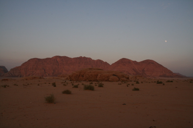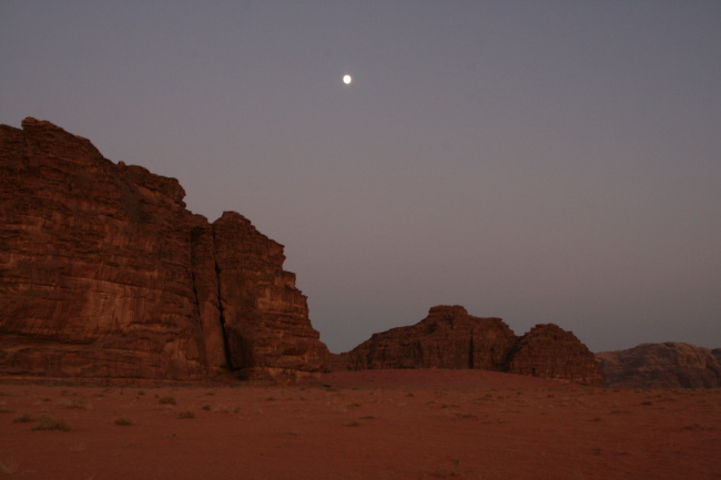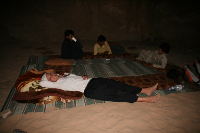 Bref, nous nous posons et dinons un maglouba. J’essaie de prendre l’exemple sur eux et j’ai mélangé la salade et le riz. Très bon. Le fossé de la culture et de la langue est trop grand. Salem est là avec son frère et son fils (un de ses 10 enfants, 6 avec la première femme et 4 avec la deuxième). Après cette première soirée, le sentiment est mitigé. Nous nous couchons, les mecs se mettent à l’écart, notre ami le renard vient nous rendre visite. Puis nous nous couchons, il fait bon, le ciel n’est pas encore étoilé à cause la pleine lune mais pendant la nuit, c’est magnifique. Bonne nuit malgré plusieurs réveils.