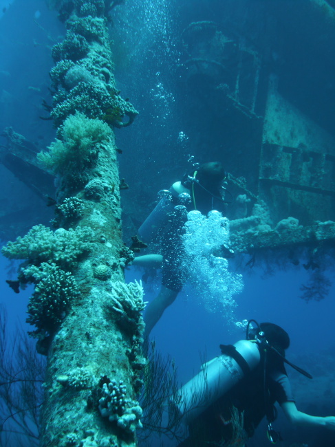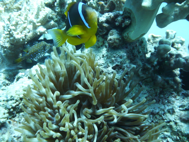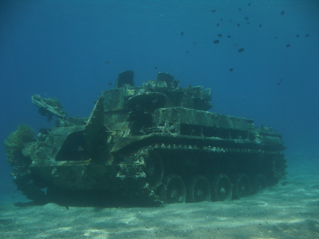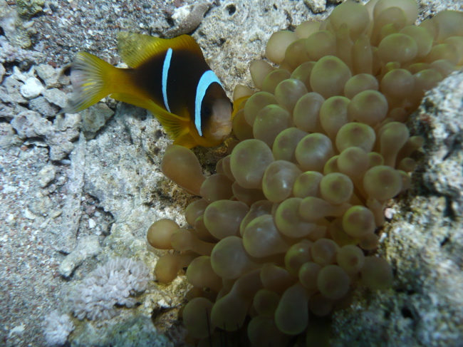 Lever vers 8h tranquille, nous petit déjeunons un super petit déjeuner : omelette, vache qui rit, confiture, pain. Miam Miam. Nous nous préparons pour aller plonger. Nous allons sur la plage (plage du visitor center), nous équipons nos bouteilles, il faut traverser la plage pieds nus ! L Les autres ont tous des chaussons, nous comprenons mieux pourquoi le guide insistait pour savoir si nous voulions vraiment conserver nos palmes perso ! La mise à l’eau se fait donc de la plage. Le premier spot visité est le Cedar Pride Wreck, lors du débrief je n’ai pas du tout compris qu’il s’agissait d’une épave. Nous commençons la plongée sur des coraux sympas, j’aperçois mon premier poisson lion que je m’empresse de montrer à Yoann. Nous continuons sur de beaux coraux et de beaux poissons puis nous arrivons sur cette énorme épave ! Impressionnant ! Nous la contournons, nous avons limite une sensation d’oppression de voir un tel engin dans l’eau. Au détour de l’épave, nous voyons un majestueux poisson lion ! Super ! Nous continuons la plongée, malgré moi j’ai angoissé Yoann qui ne me voyait plus car j’étais au dessus de lui. Pardon ! Je suis redescendue dès que j’ai compris qu’il ne me verrait pas. Nous terminons cette plongée qui était riche en émotions et en rencontre. Nous retournons à la plage, nous déséquipons le matériel et rééquipons dans la foulée. Nous enchainons la deuxième plongée. Nous nous reposons un peu et c’est reparti. Nous nous brûlons à nouveau les pieds avant la mise à l’eau et c’est toujours aussi casse gueule. Cette fois ci nous allons découvrir le jardin japonais. L’inconvénient c’est que nous avons dû traverser un grand banc de salade. Le spot est joli, beaucoup de poissons et de coraux mais je trouve que nous ne sommes pas restés assez longtemps. Les deux plongées ont été vraiment sympas. Nous rentrons crevés à l’hôtel. Nous avons discuté avec un français Phil iforme J et d’autres groupes. Ces personnes nous ont convaincus qu’il ne fallait pas rester 3 jours au Wadi Rum… J’appelle le guide pour le prévenir que nous ne ferons que 2 jours et en profitons pour réserver une plongée supplémentaire le lendemain matin. J Nous déjeunons à 16h, nous nous posons dans l’hôtel et admirons le coucher de soleil. Nous nous reposons dans la chambre et allons diner.